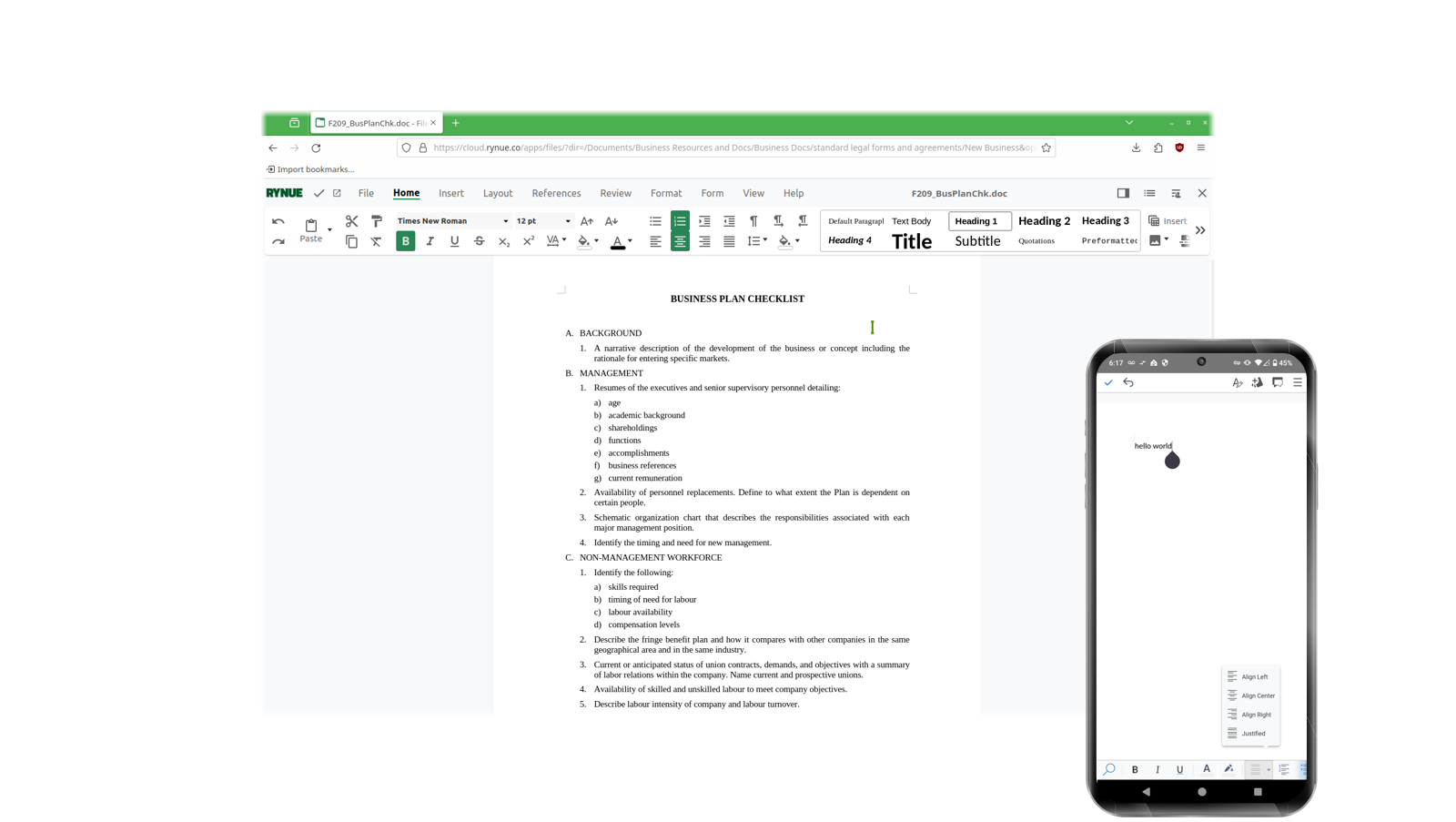edit documents in a full browser experience or via app.